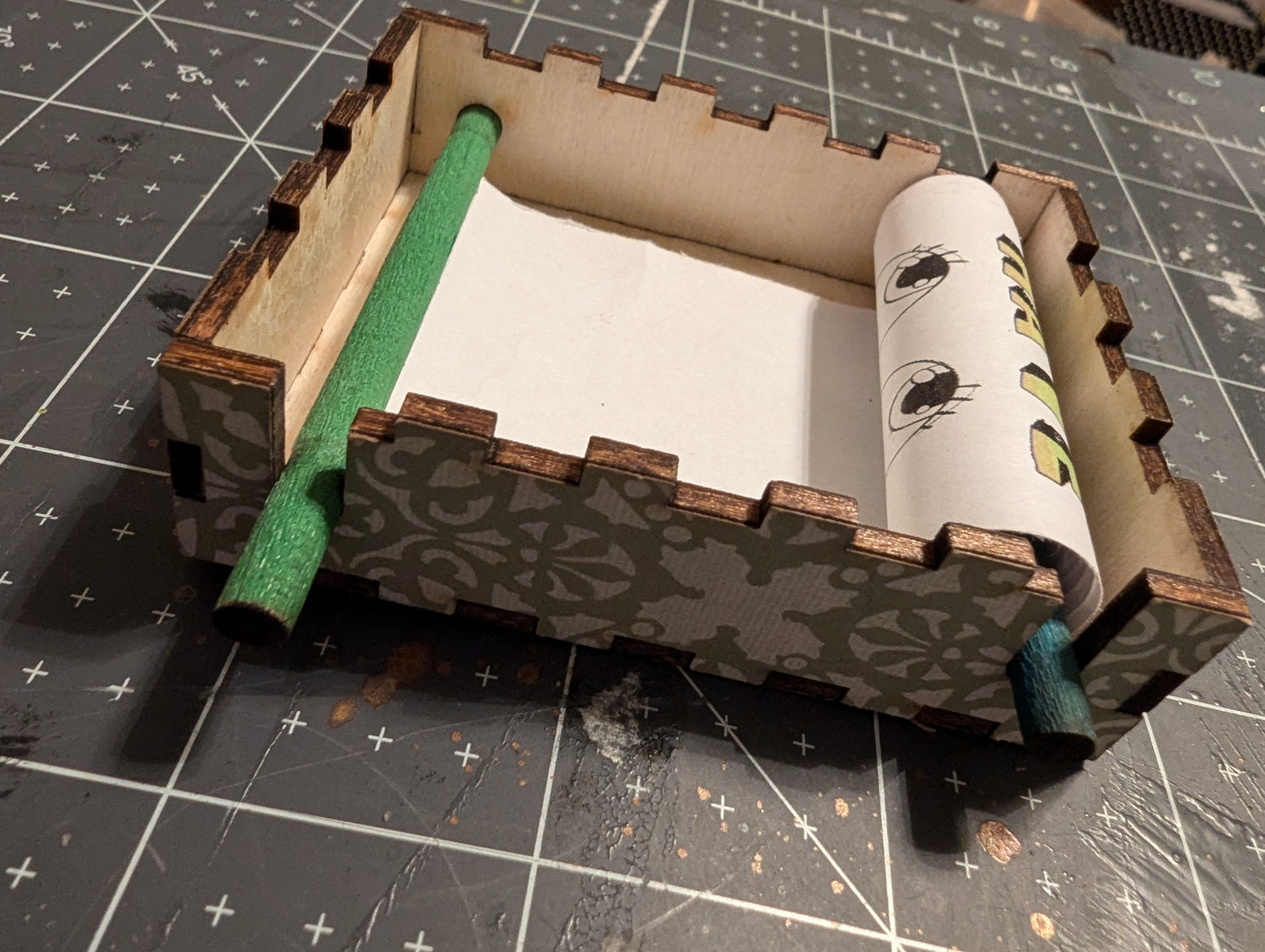 You have your Matchbox Crankie assembled! The kit comes with two scroll sticks and the ready cut scroll, waiting for you to draw and stick!