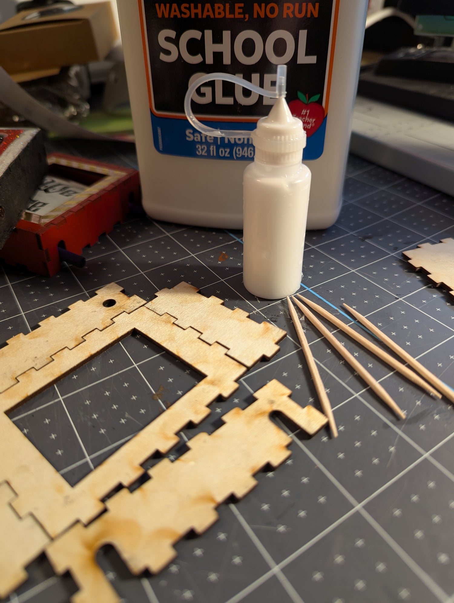 FUN FACT! Technically, you don't even need glue! you can just hold everything together with 2 or 3 small rubber bands! Glue lasts longer and is stronger. But if you want to be able to take everything apart again, the rubber bands will work just fine!